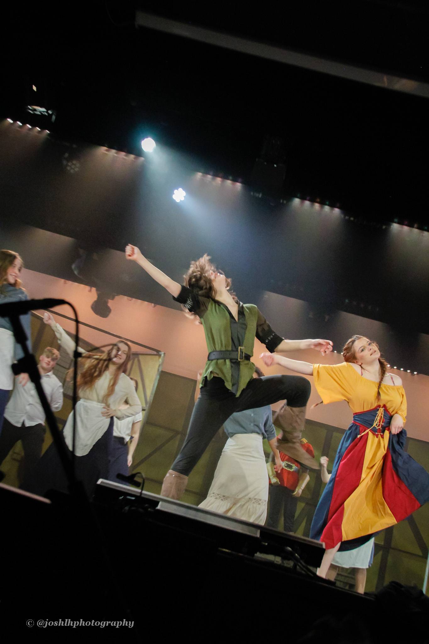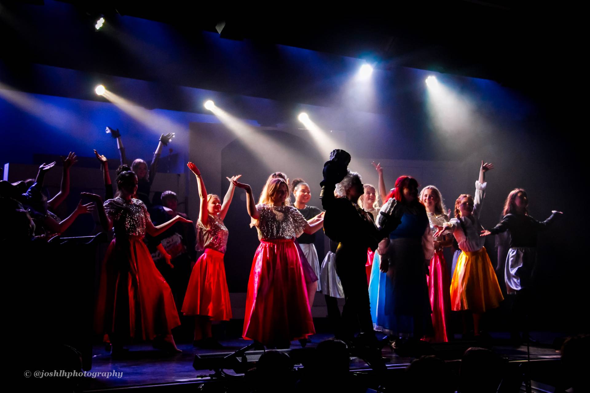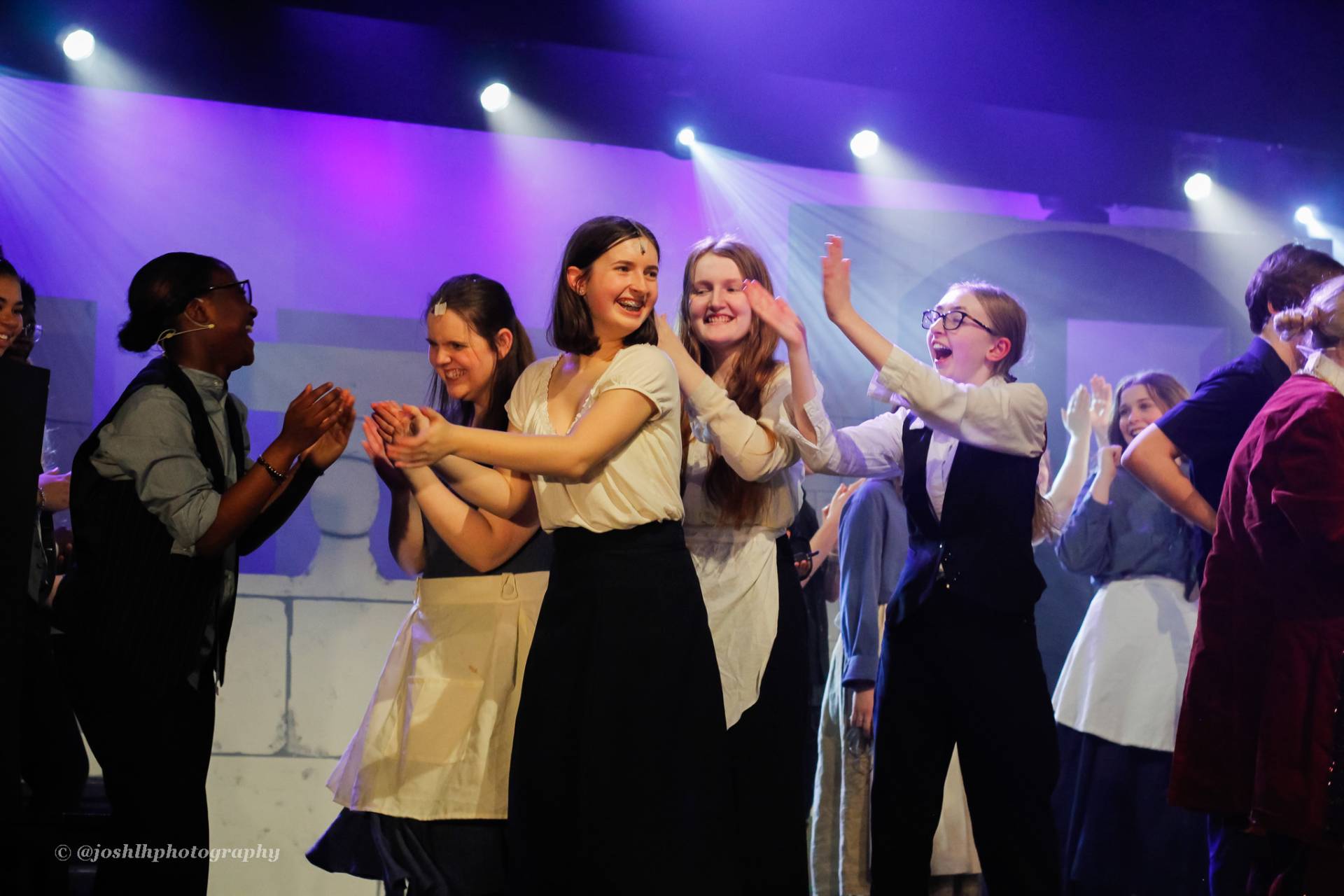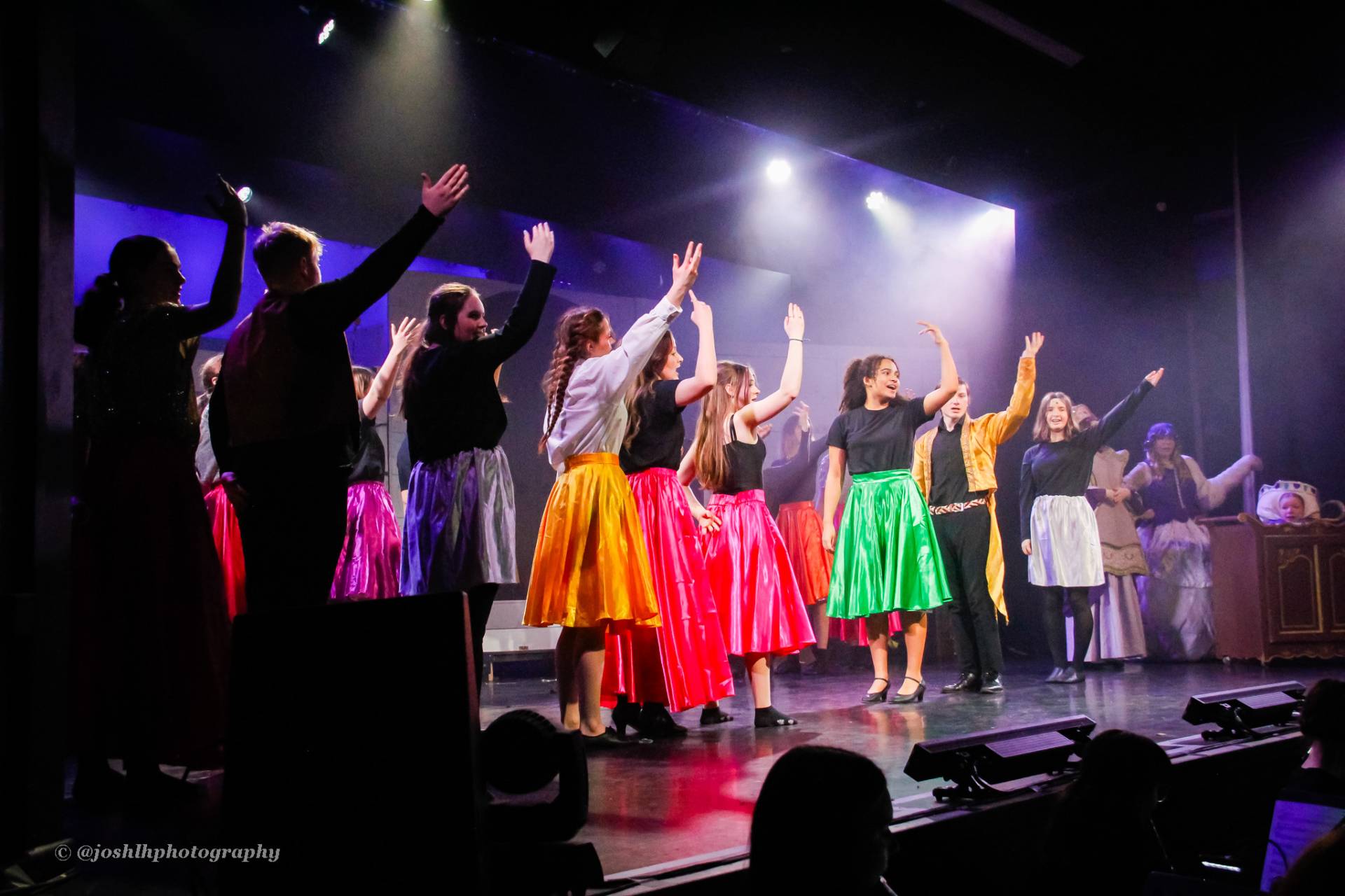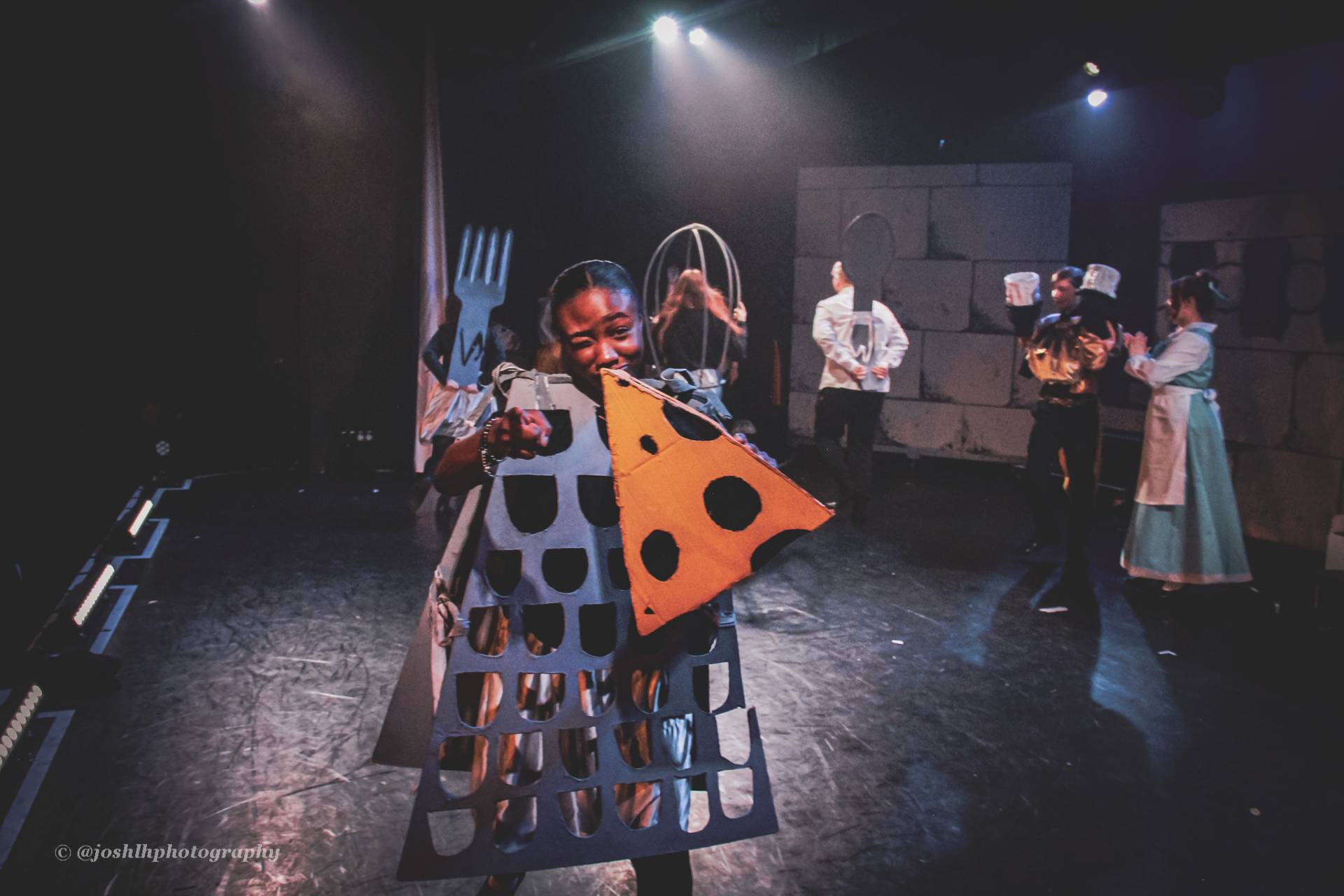 Behind the scenes, students and staff worked tirelessly, with Mark Stratton Performing Arts Technician and Teacher of the Production Arts course overseeing technical aspects, including set design and sound. Stage management students Alex Hammond and Isaac Champion, along with others, handled running the show. Bex Dilley and Beatriz Santos-Goncalves did a fantastic job managing costumes. Nathan Lee and Ollie Funnel contributed to the artistic look and lighting concept, respectively, overseen by Myles Waugh-Bacchus, Central Studio Technician and former production arts student. Teacher of Dance Craig Horton collaborated with student choreographers on the fantastic dance routines , whilst QMC’s vocal coach Ashley Hughes supported Francesco in coaching the ensemble and individual cast members.