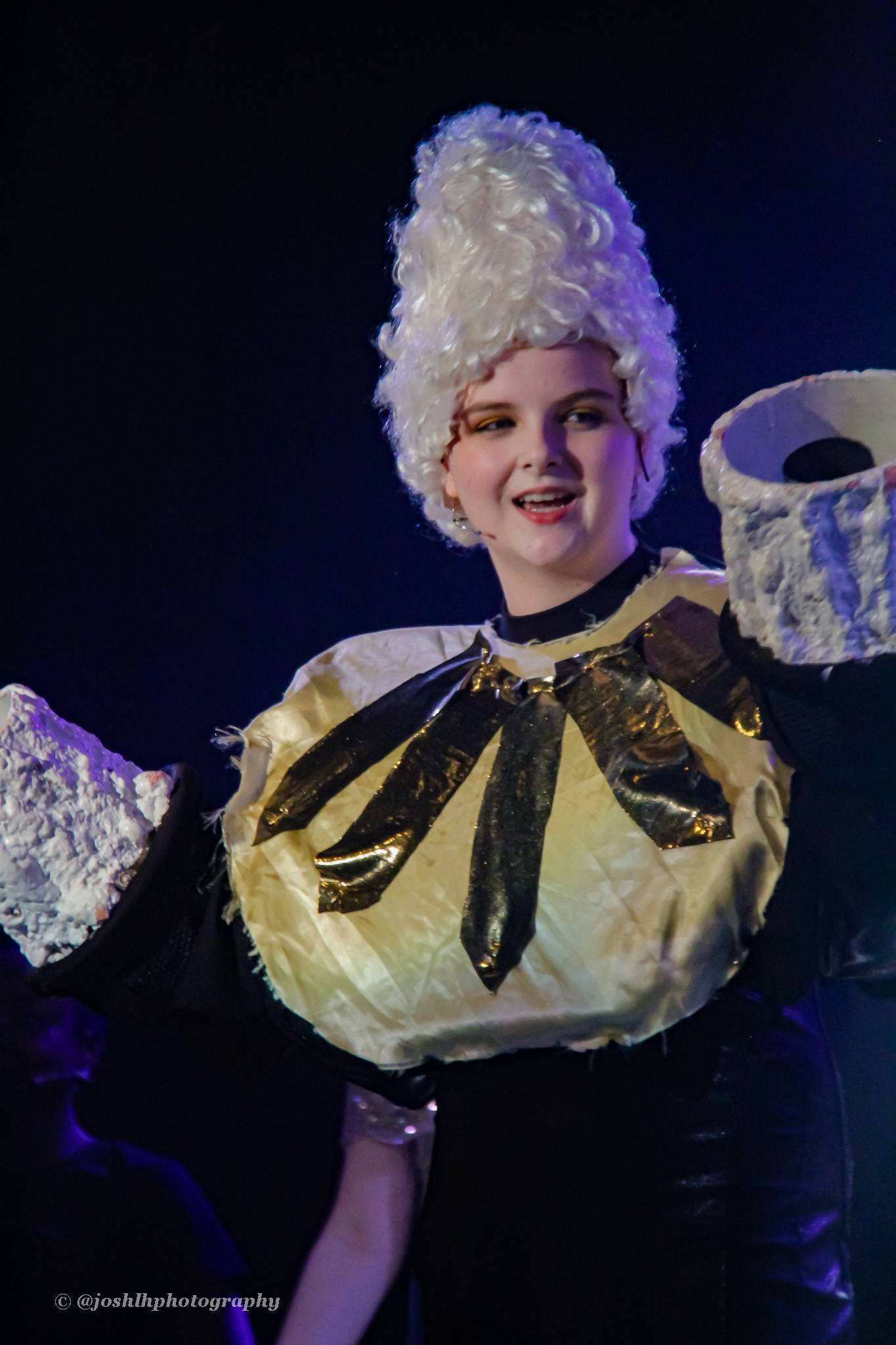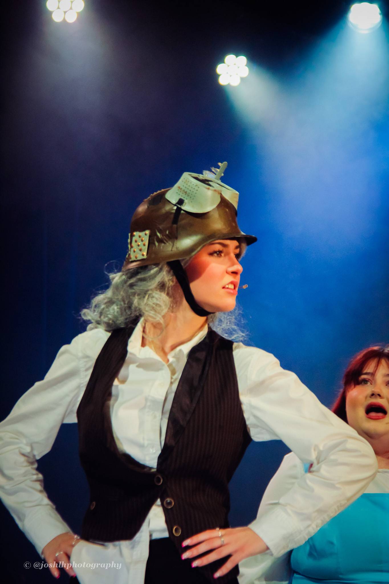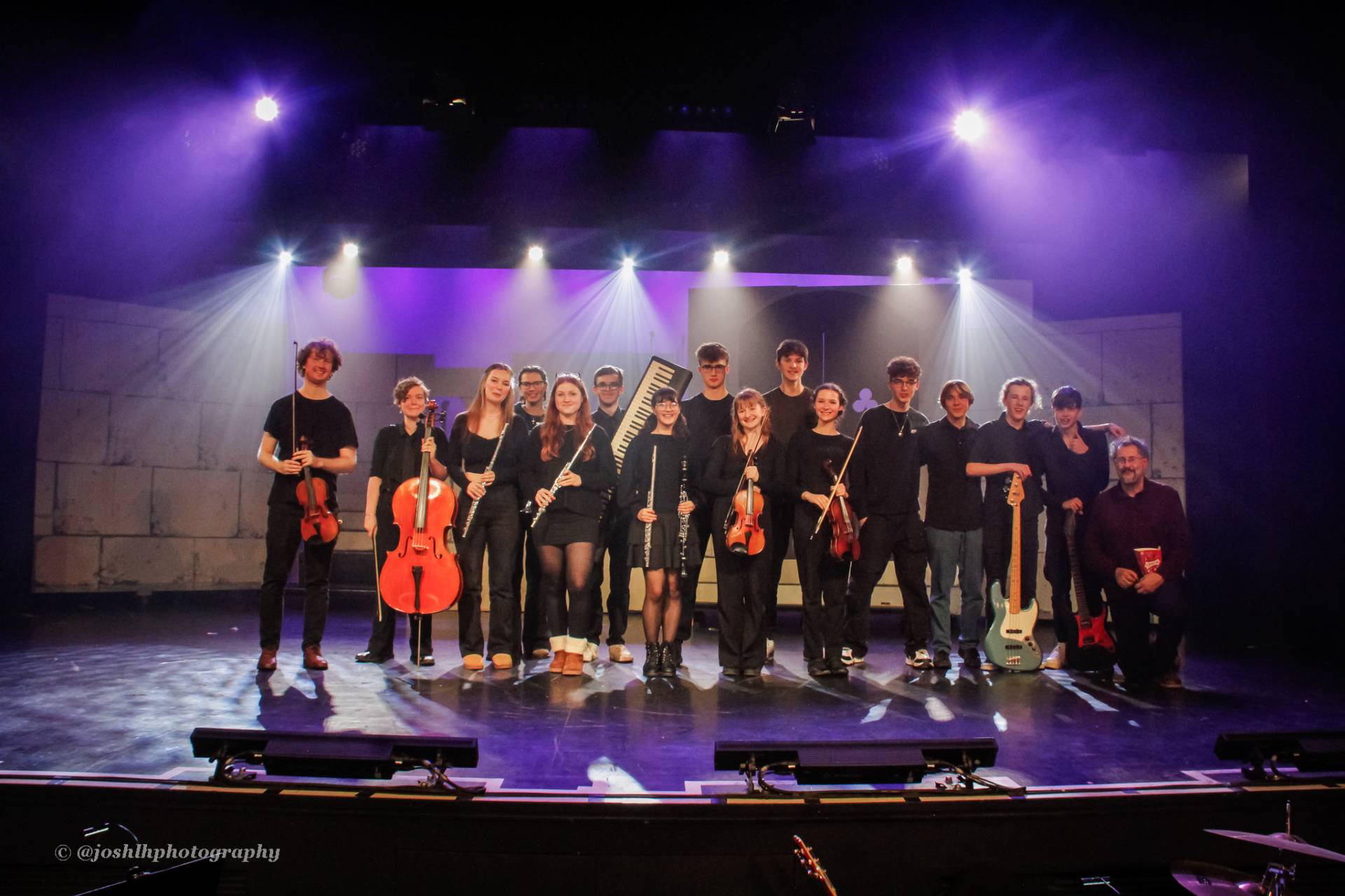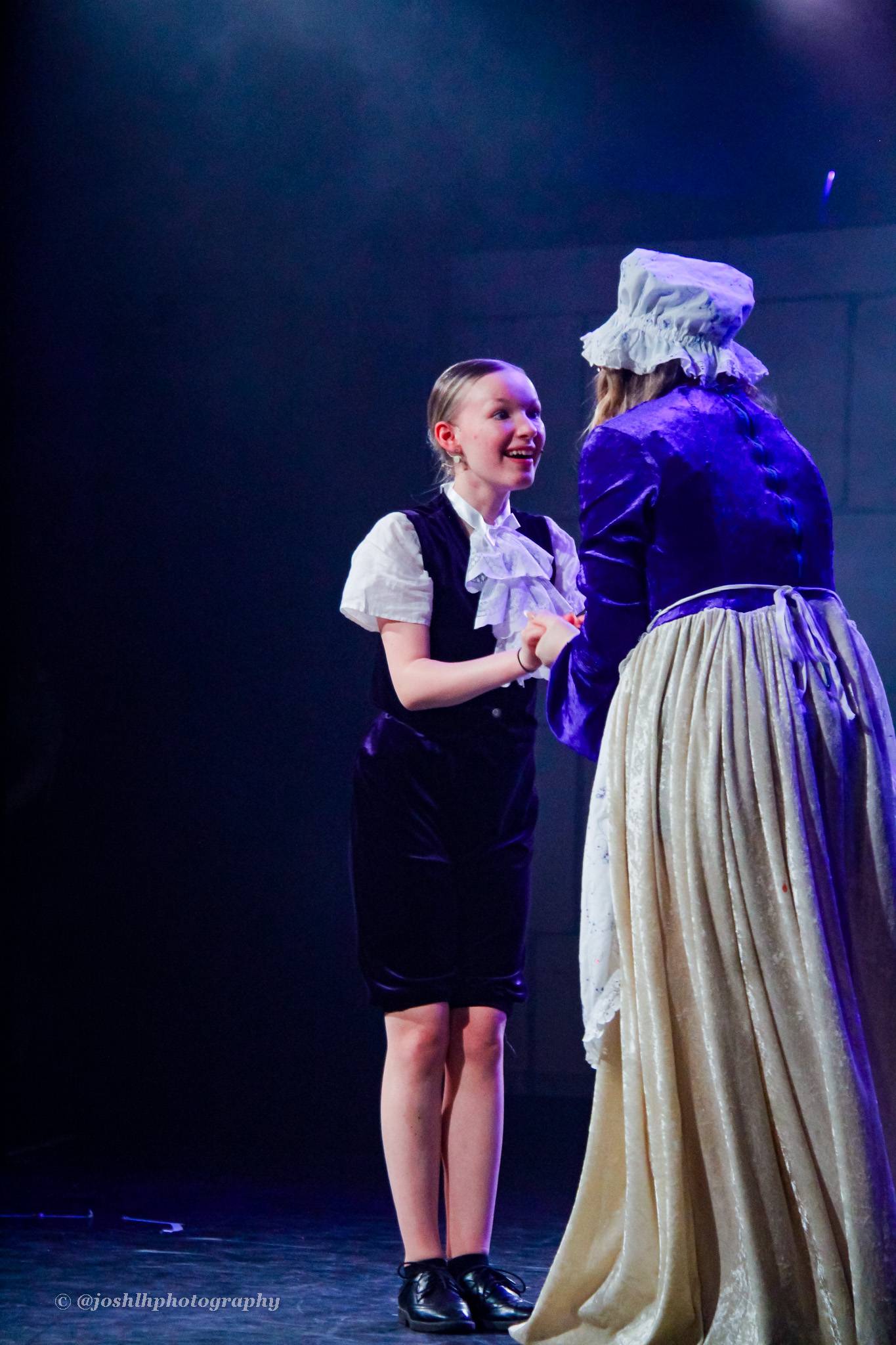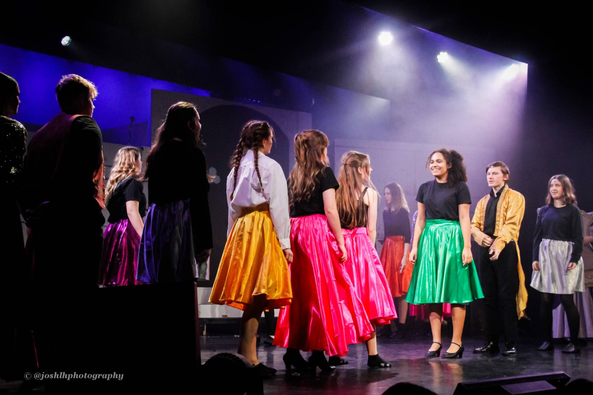 Behind the scenes, students and staff worked tirelessly, with Mark Stratton Performing Arts Technician and Teacher of the Production Arts course overseeing technical aspects, including set design and sound. Stage management students Alex Hammond and Isaac Champion, along with others, handled running the show. Bex Dilley and Beatriz Santos-Goncalves did a fantastic job managing costumes. Nathan Lee and Ollie Funnel contributed to the artistic look and lighting concept, respectively, overseen by Myles Waugh-Bacchus, Central Studio Technician and former production arts student. Teacher of Dance Craig Horton collaborated with student choreographers on the fantastic dance routines , whilst QMC’s vocal coach Ashley Hughes supported Francesco in coaching the ensemble and individual cast members.