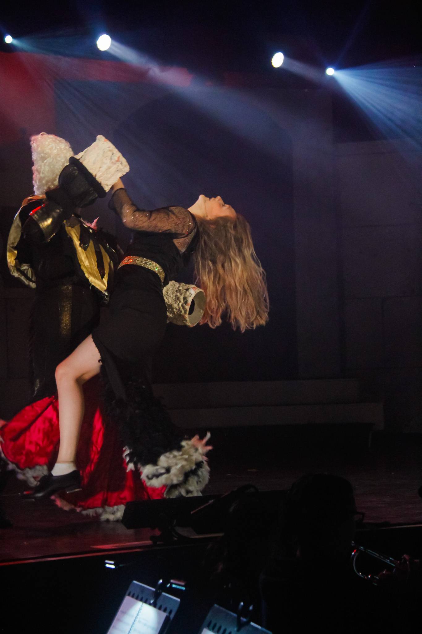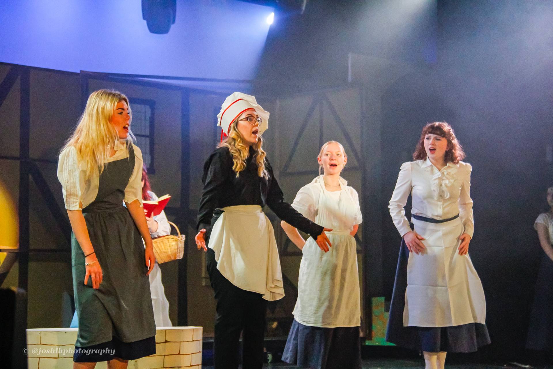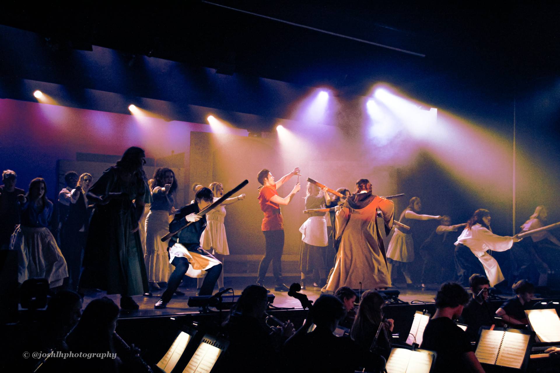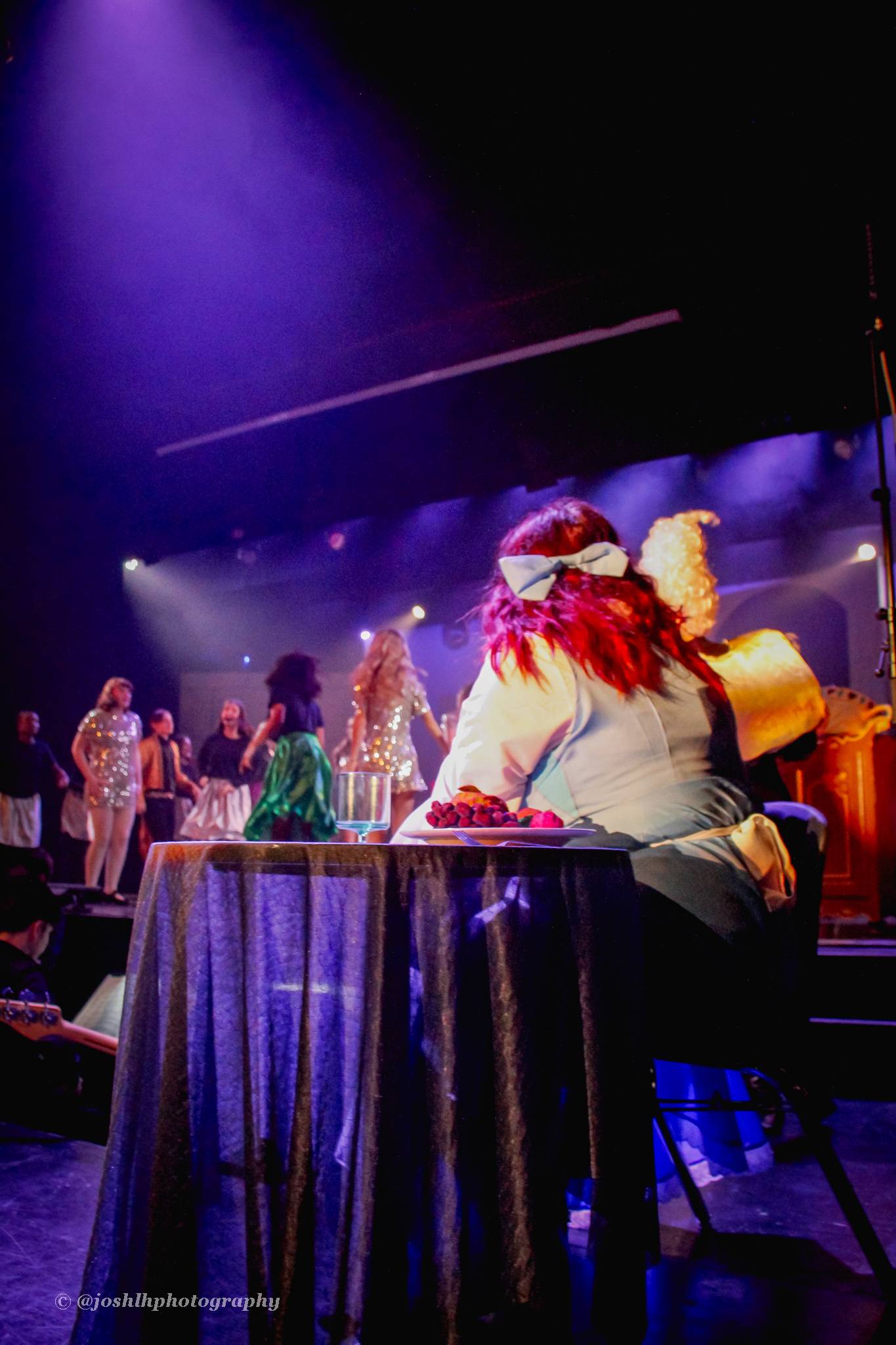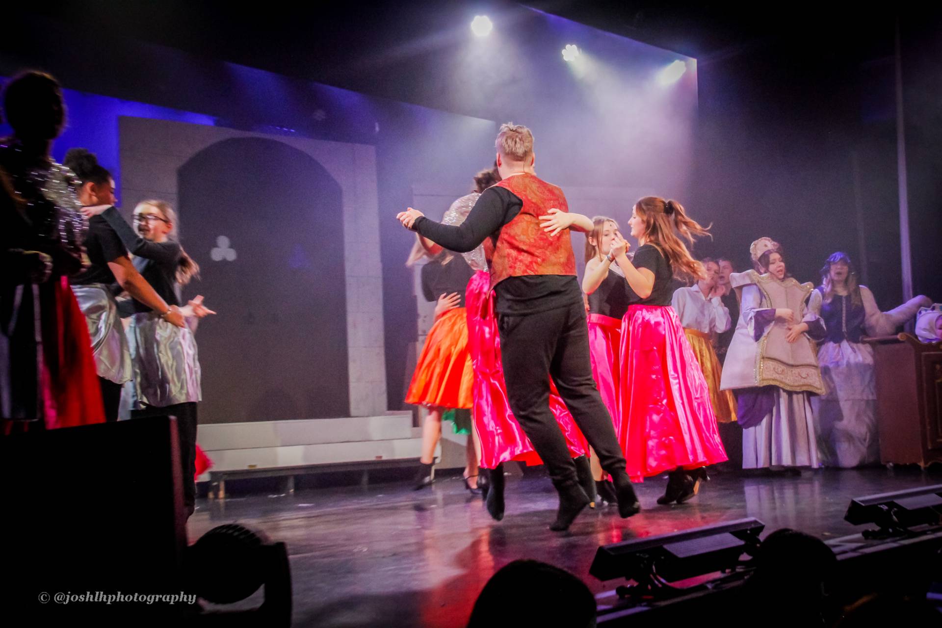 Behind the scenes, students and staff worked tirelessly, with Mark Stratton Performing Arts Technician and Teacher of the Production Arts course overseeing technical aspects, including set design and sound. Stage management students Alex Hammond and Isaac Champion, along with others, handled running the show. Bex Dilley and Beatriz Santos-Goncalves did a fantastic job managing costumes. Nathan Lee and Ollie Funnel contributed to the artistic look and lighting concept, respectively, overseen by Myles Waugh-Bacchus, Central Studio Technician and former production arts student. Teacher of Dance Craig Horton collaborated with student choreographers on the fantastic dance routines , whilst QMC’s vocal coach Ashley Hughes supported Francesco in coaching the ensemble and individual cast members.