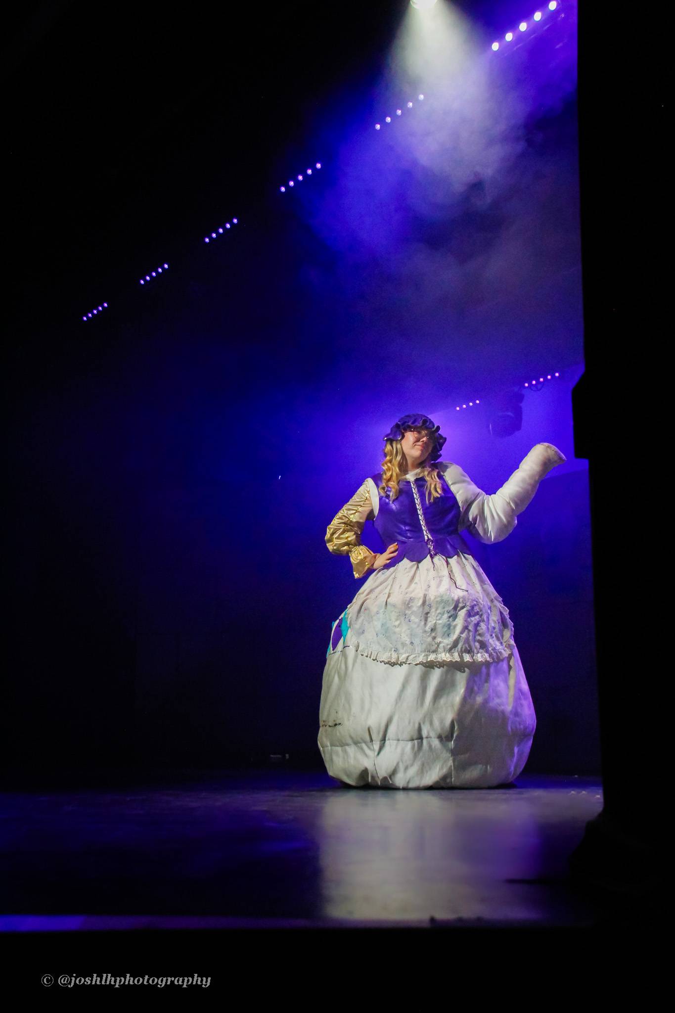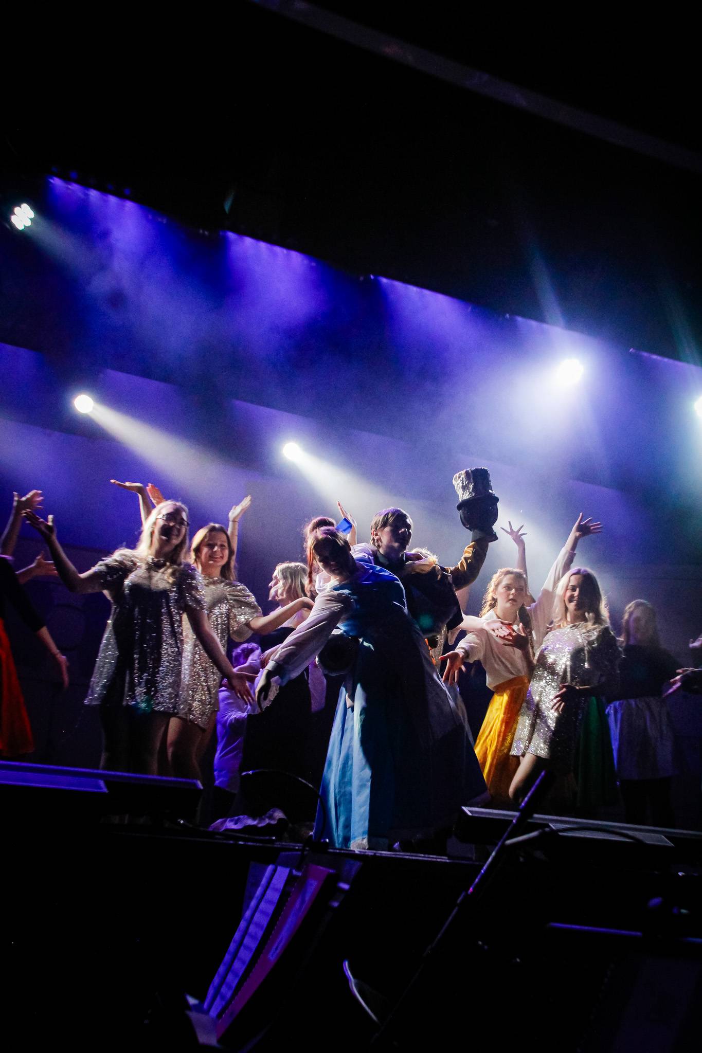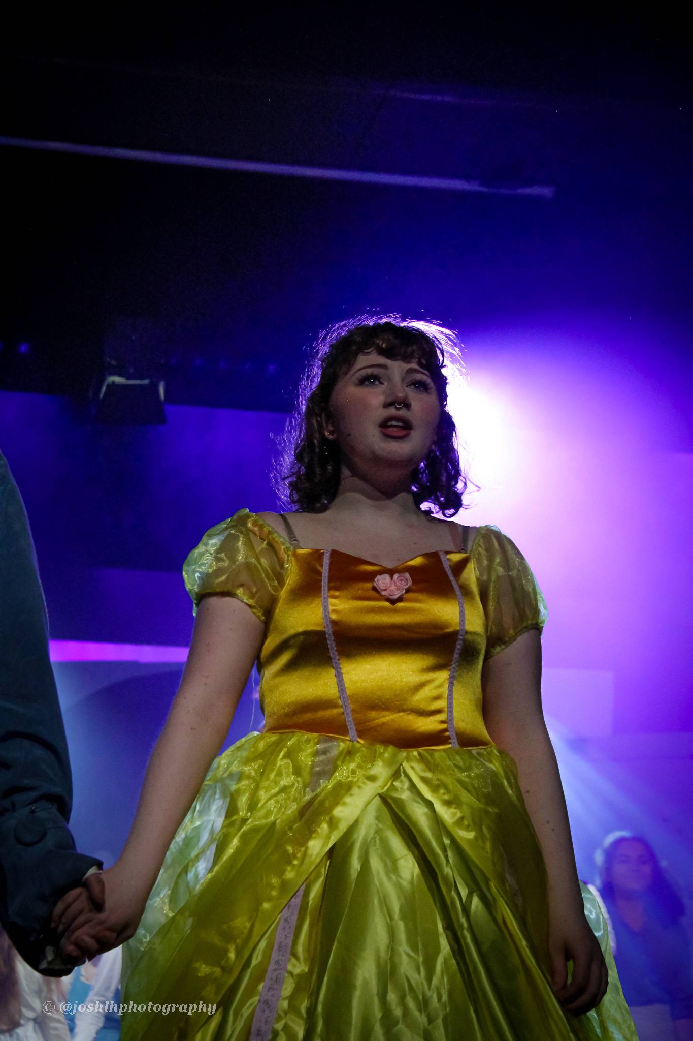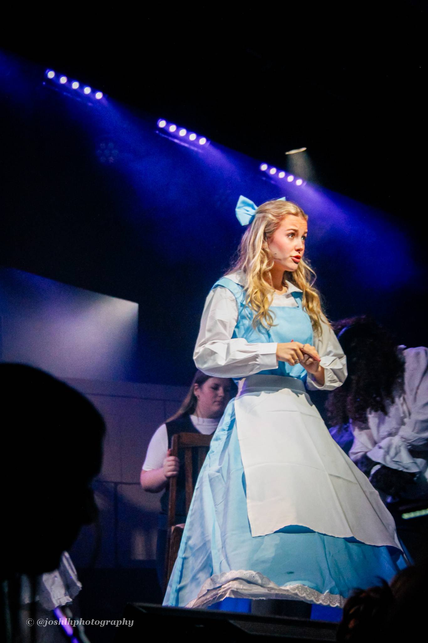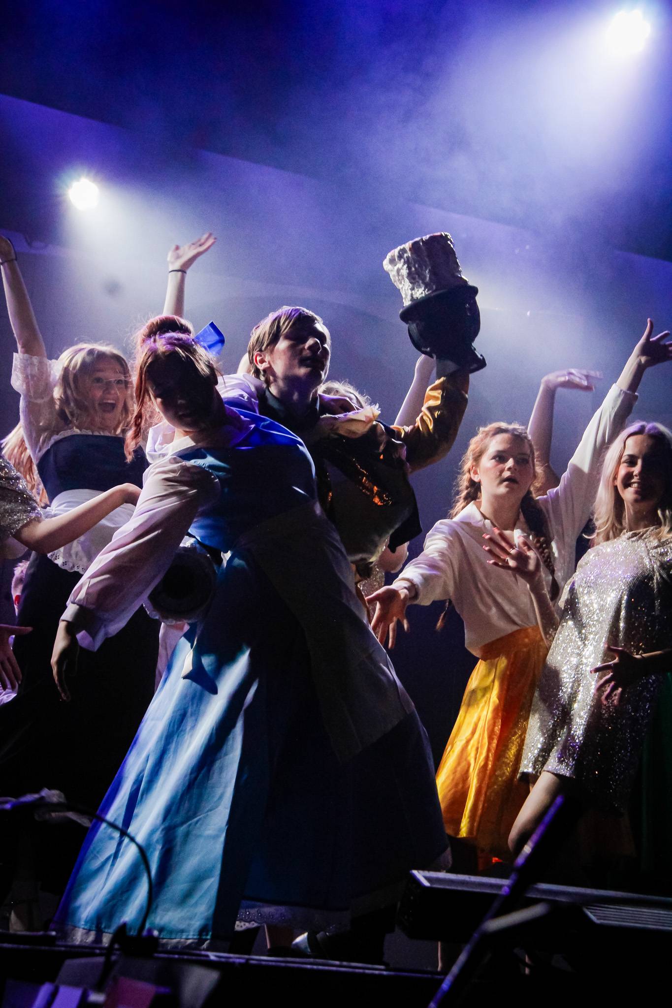 Behind the scenes, students and staff worked tirelessly, with Mark Stratton Performing Arts Technician and Teacher of the Production Arts course overseeing technical aspects, including set design and sound. Stage management students Alex Hammond and Isaac Champion, along with others, handled running the show. Bex Dilley and Beatriz Santos-Goncalves did a fantastic job managing costumes. Nathan Lee and Ollie Funnel contributed to the artistic look and lighting concept, respectively, overseen by Myles Waugh-Bacchus, Central Studio Technician and former production arts student. Teacher of Dance Craig Horton collaborated with student choreographers on the fantastic dance routines , whilst QMC’s vocal coach Ashley Hughes supported Francesco in coaching the ensemble and individual cast members.