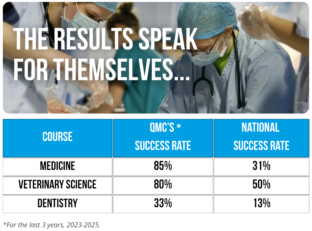 QMC boasts an unrivalled package of support for students interested in pursuing careers in Medicine, Veterinary and Dentistry. Our team of experts identify such students early on and hold regular meetings to guide them through the process.